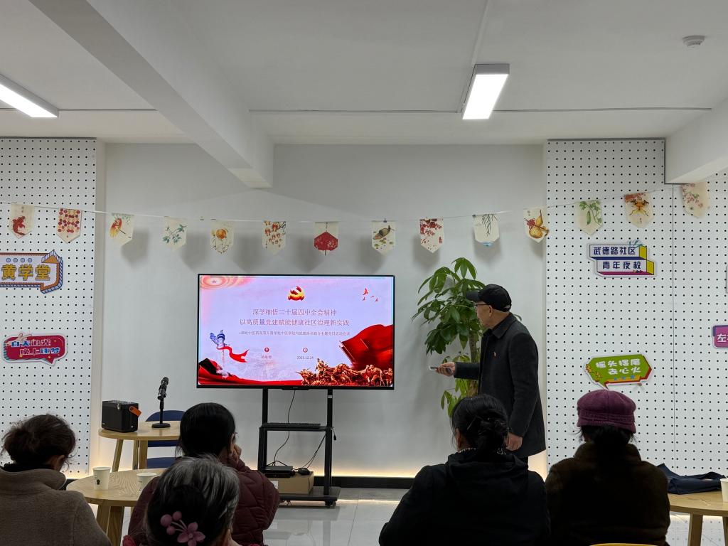 活动以“深学细悟党的二十届四中全会精神,以高质量党建联建赋能健康社区治理新实践”为主题,紧密结合湖北省“干部素质提升年”关于“进一步走好新时代党的群众路线”“常态化下沉社区参与基层治理”等要求展开。中医学院党总支书记杨敬博讲授专题党课,深入解读党的二十届四中全会精神,强调要坚持党建引领、制度先行,将党的组织优势转化为社区健康治理效能,同时号召全体党员在服务基层中锤炼党性、提升能力,以实际行动响应干部素质提升的号召。他结合“岐黄学堂”两年来的实践,指出校社共建是推动中医药文化惠民、服务“健康中国”战略落地的重要途径,也是党员干部在基层一线增长才干、服务群众的有效平台,未来会持续推动党建联建与中医药特色服务深度融合,切实提升社区居民健康获得感和幸福感。