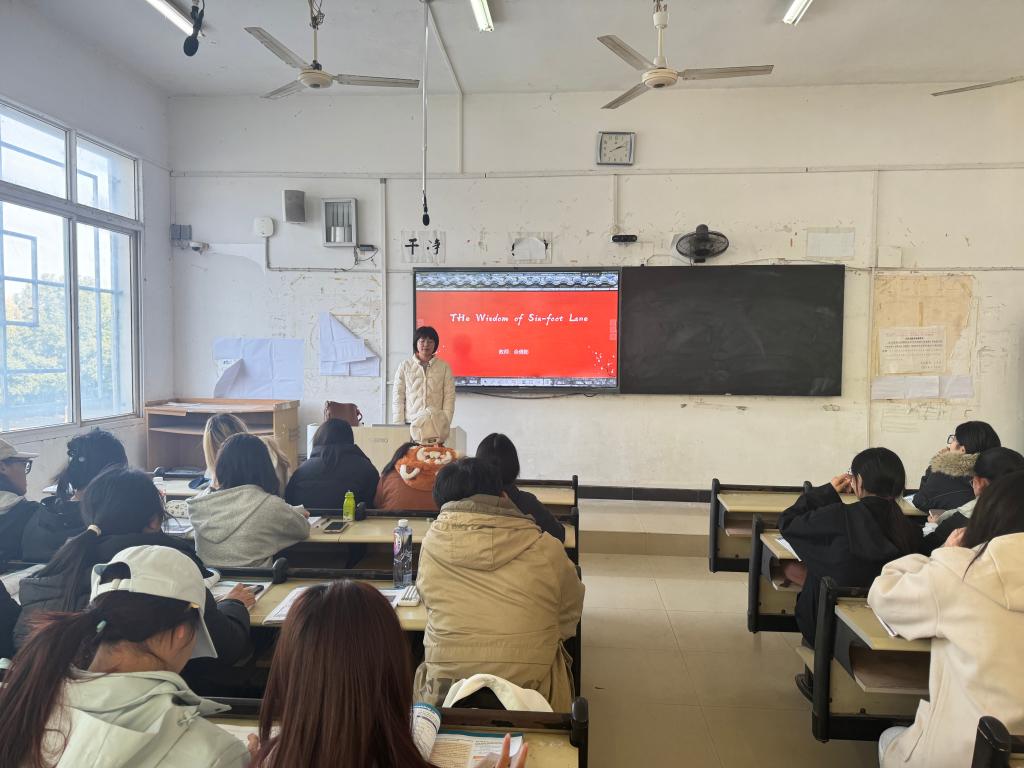 同日,佘倩影讲师以“六尺巷的智慧”为专题讲座主题,讲授了打破传统英语教学的学科壁垒,实现了语言学习与医学职业素养的有机融合。学生在学习语言的同时,深入理解“让他三尺又何妨?”背后的谦让、包容与和谐精神。随后,进一步引导学生在医患沟通、团队协作等真实工作环境展开讨论,促使学生思考如何将传统文化美德转化为未来医疗工作中的职业素养与沟通智慧,让医学人文在英语学习中落地生根。从科技前沿的教学创新实践,到传统智慧的人文素养课堂,学生既能面向未来思考技术伦理,也能扎根传统培养职业品格。今后,公共基础学院将持续以学术前沿引领和教学实践创新为抓手,为学校人才培养、提质增效注入强劲动力。