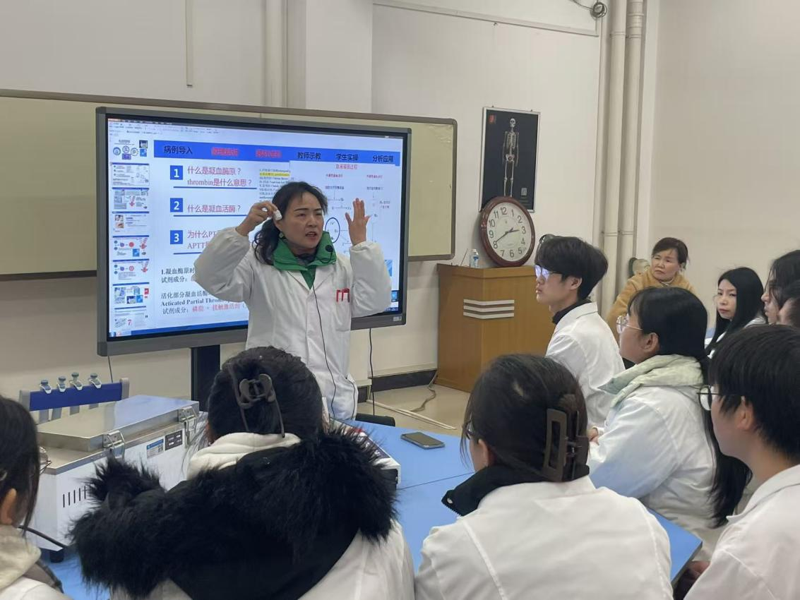 活动现场,药学院副院长王红教授以《凝血功能的测定》为题开展实验课教学示范,刘一文副教授围绕《生物碱》内容进行理论课教学示范。两位主讲人授课深入浅出、重难点突出,通过清晰的教学流程呈现、生动的案例解析、灵活的教学方法运用及高效的课堂组织,为参会教师提供了可借鉴的优质教学范例。